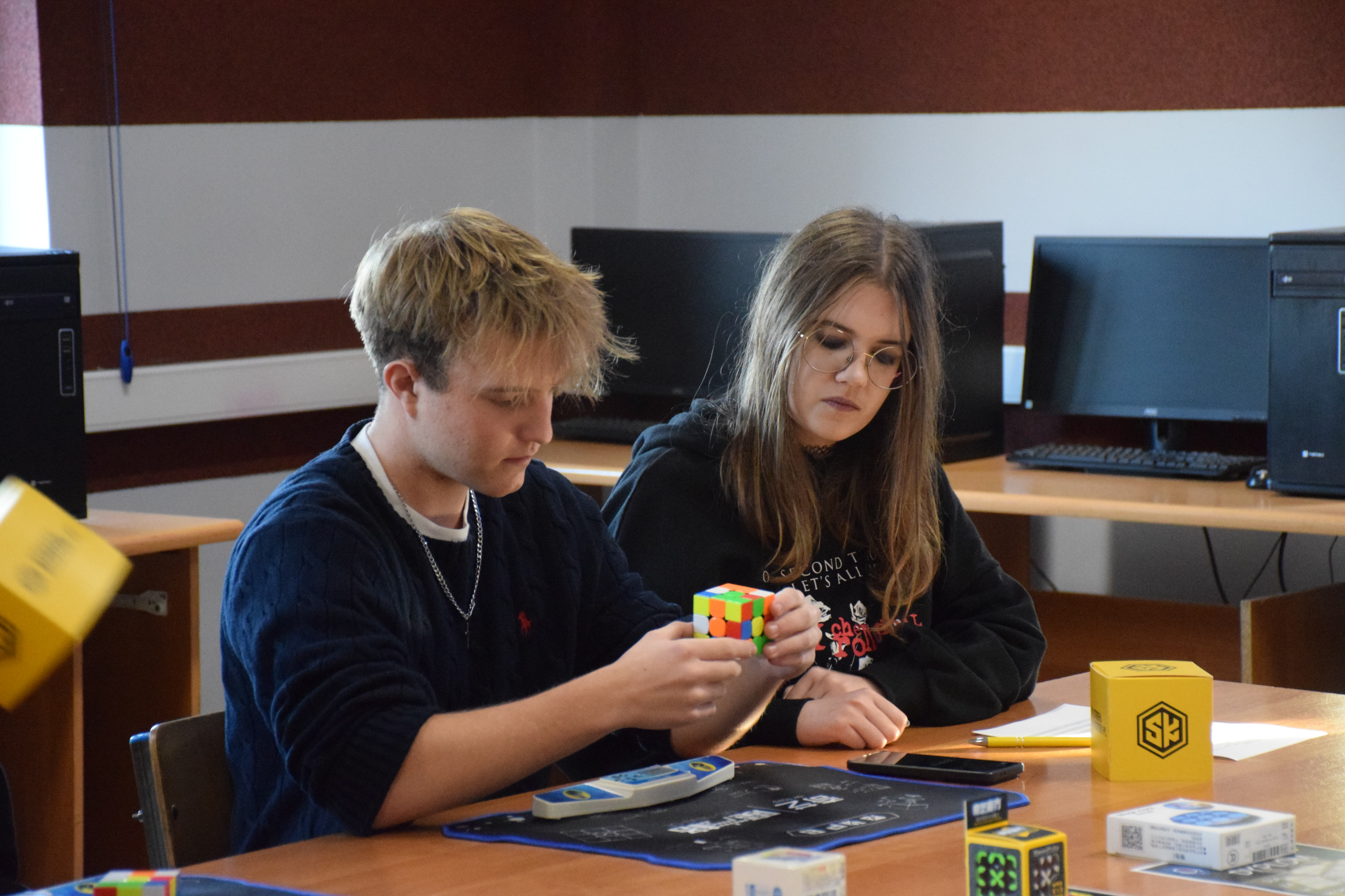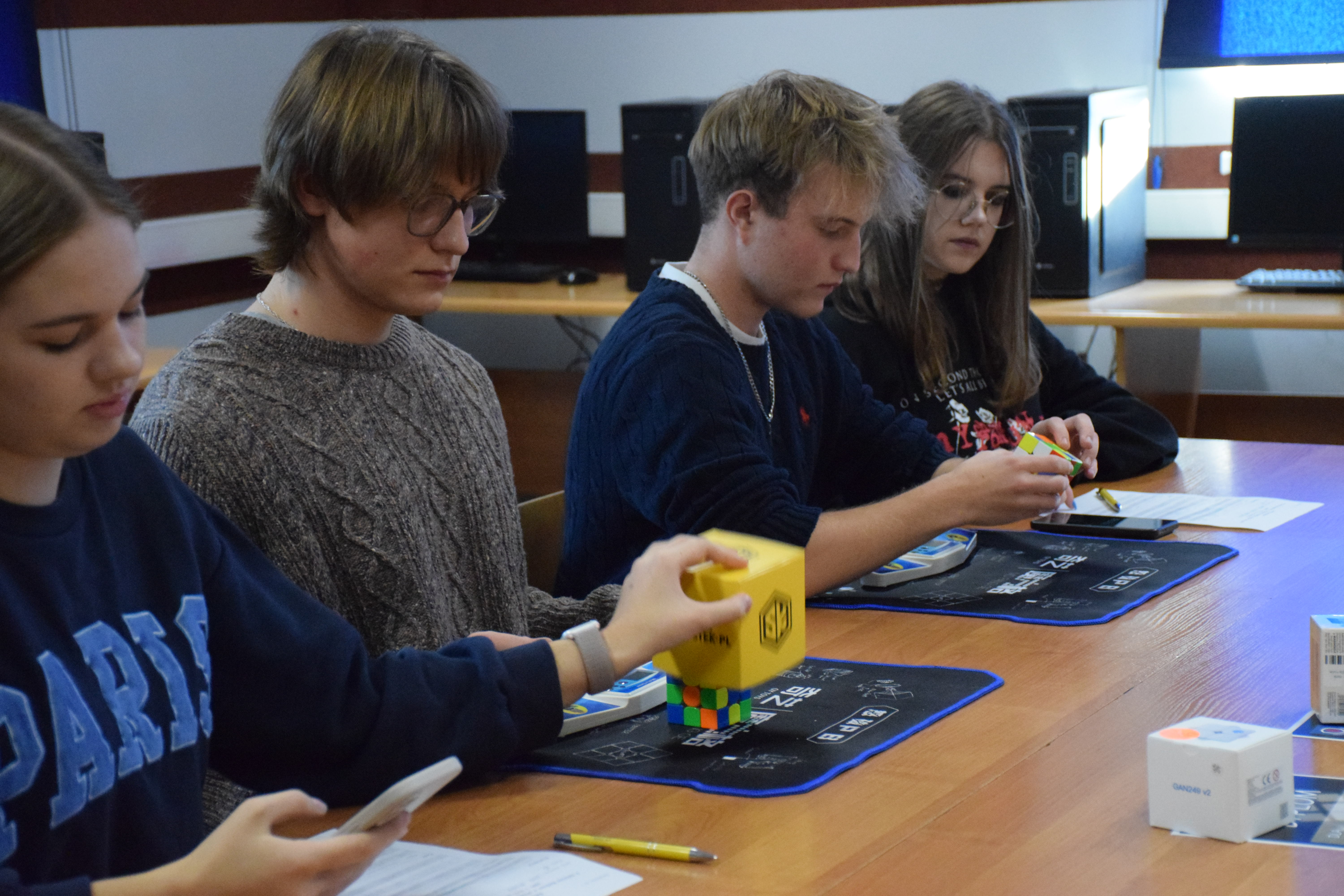 W dniu 13.11.2025 r. odbył się V Szkolny Konkurs w układaniu kostki Rubika na czas.